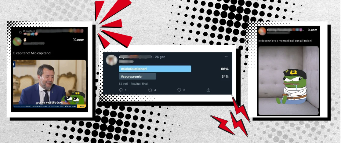 El medio italiano Facta identificó en 2021 en X a los llamados mattonisti (albañiles), un grupo de varios cientos de cuentas italianas coordinadas entre sí. Detrás de las cuentas, explica Facta, se esconde una organización precisa: el canal mattonisti coordinado a través de Telegram, donde se reúnen para decidir qué hashtags impulsar en las tendencias de X, aprovechando la actualidad para amplificar contenidos reaccionarios y normalizar símbolos fascistas y nazis. La marca distintiva de los mattonisti es el uso de Wojak, un personaje meme dibujado de forma tosca que se utiliza como máscara para representar emociones negativas como la tristeza y la melancolía. En el contexto de los mattonisti, Wojak se convierte a menudo en Mussolini o Hitler, transformando a personajes históricos en iconos pop con un poderoso atractivo visual.