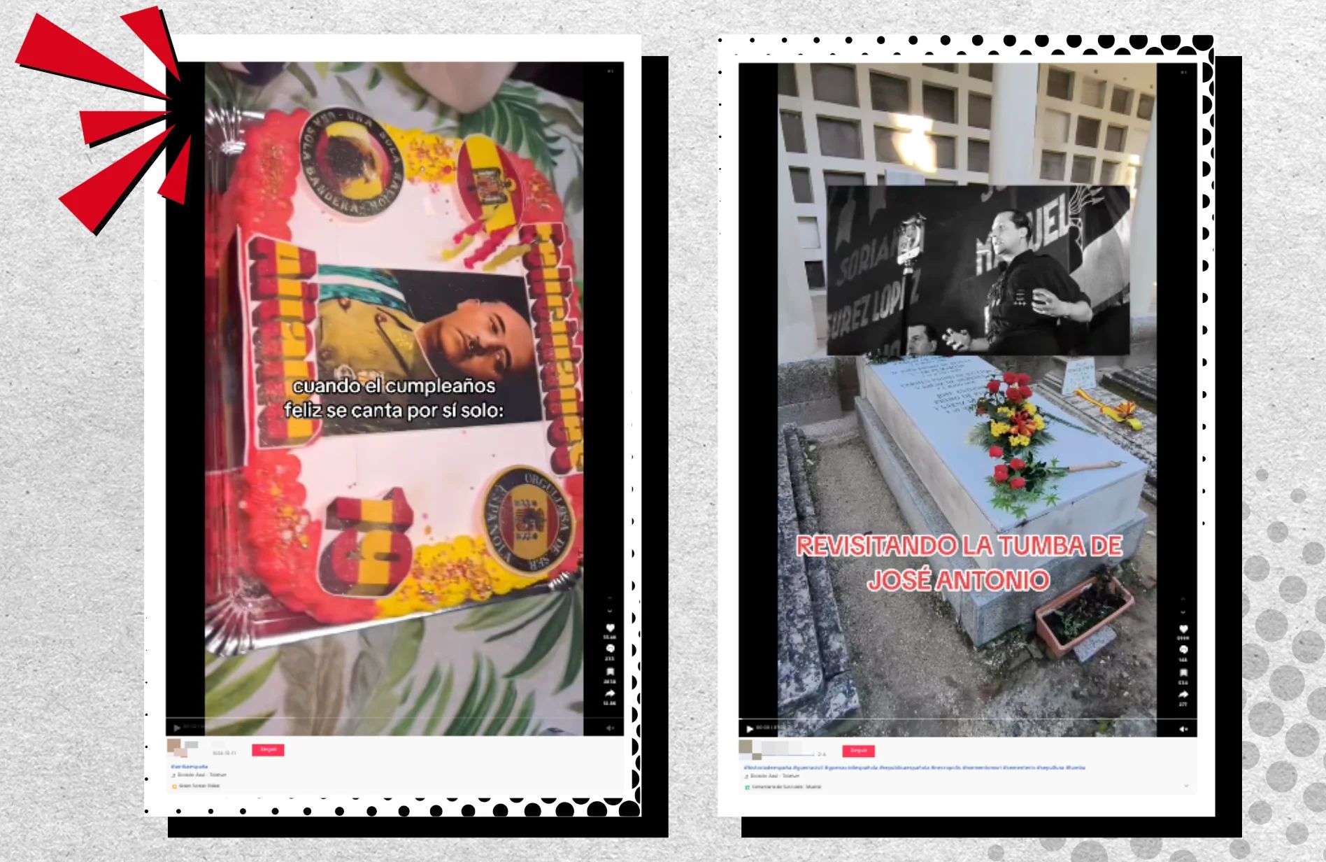Contenidos que utilizan audios con discursos de Primo de Rivera y Blas Piñar. Fuente: TikTok