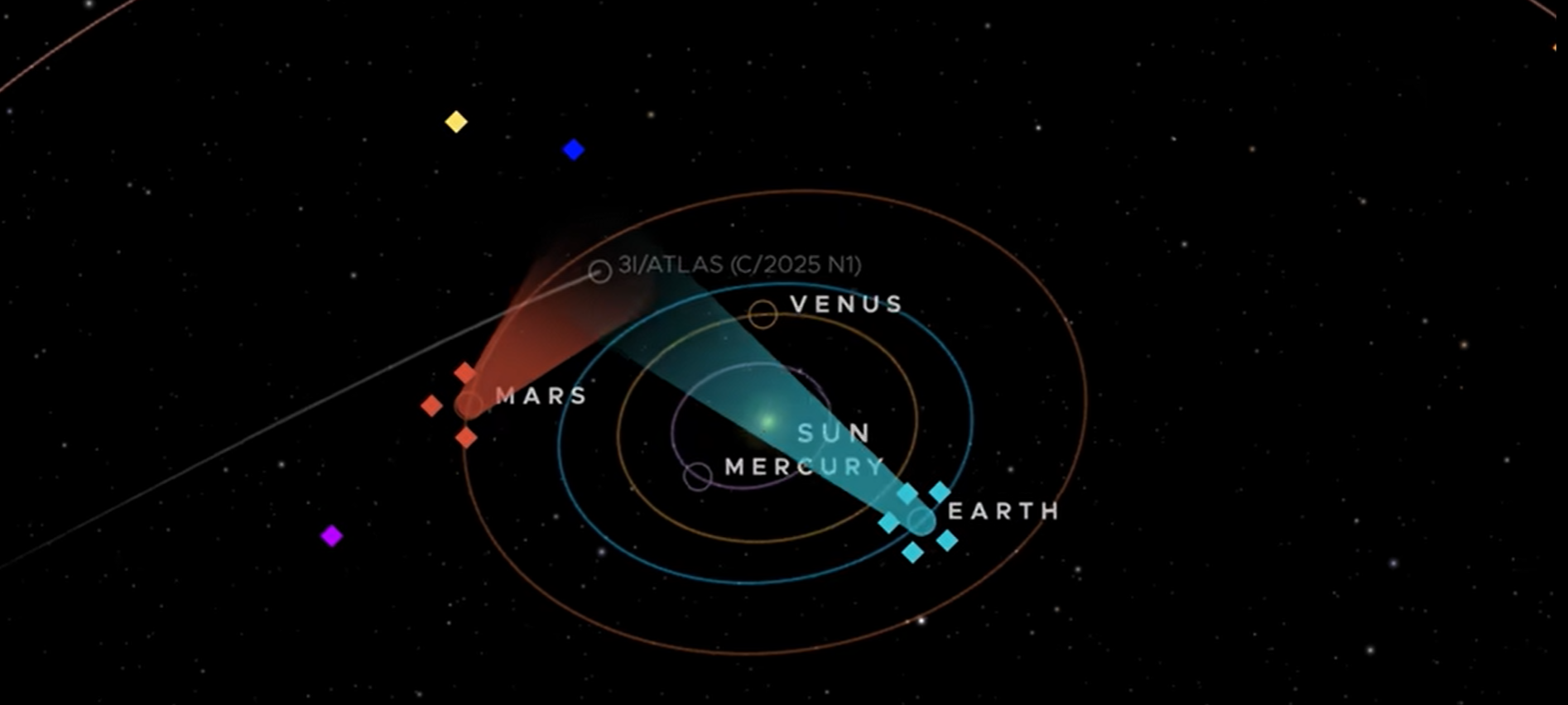 Para observarlo desde nuestro planeta, las agencias espaciales explican que no será visible desde la Tierra entre finales septiembre y principios de diciembre de 2025, ya que pasará por ‘detrás’ del Sol respecto a la perspectiva de la Tierra.