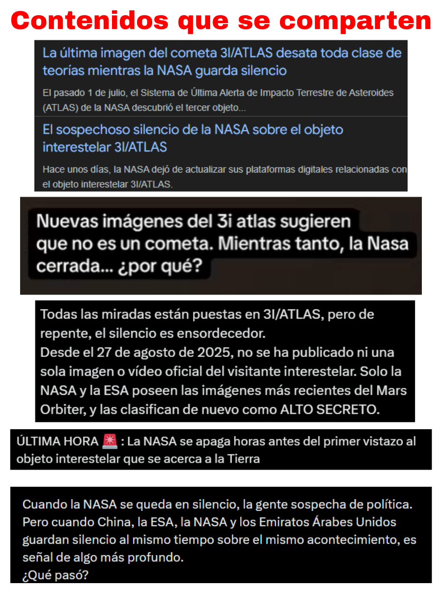 Algunos contenidos en redes sociales destacan que la NASA no está ofreciendo información pública sobre el cometa desde el 30 de septiembre de 2025, diciendo que la agencia estaría ocultando información. En realidad, la agencia espacial no está actualizando ninguno de sus canales públicos ni redes sociales debido al shutdown o cierre del Gobierno estadounidense, ocurrido el 1 de octubre de 2025.