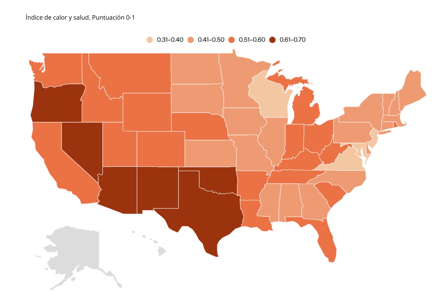 Los estados del suroeste tienen más probabilidades de sufrir efectos negativos en la salud por el calor extremo. Fuente: Informe del Fondo de la Commonwealth.