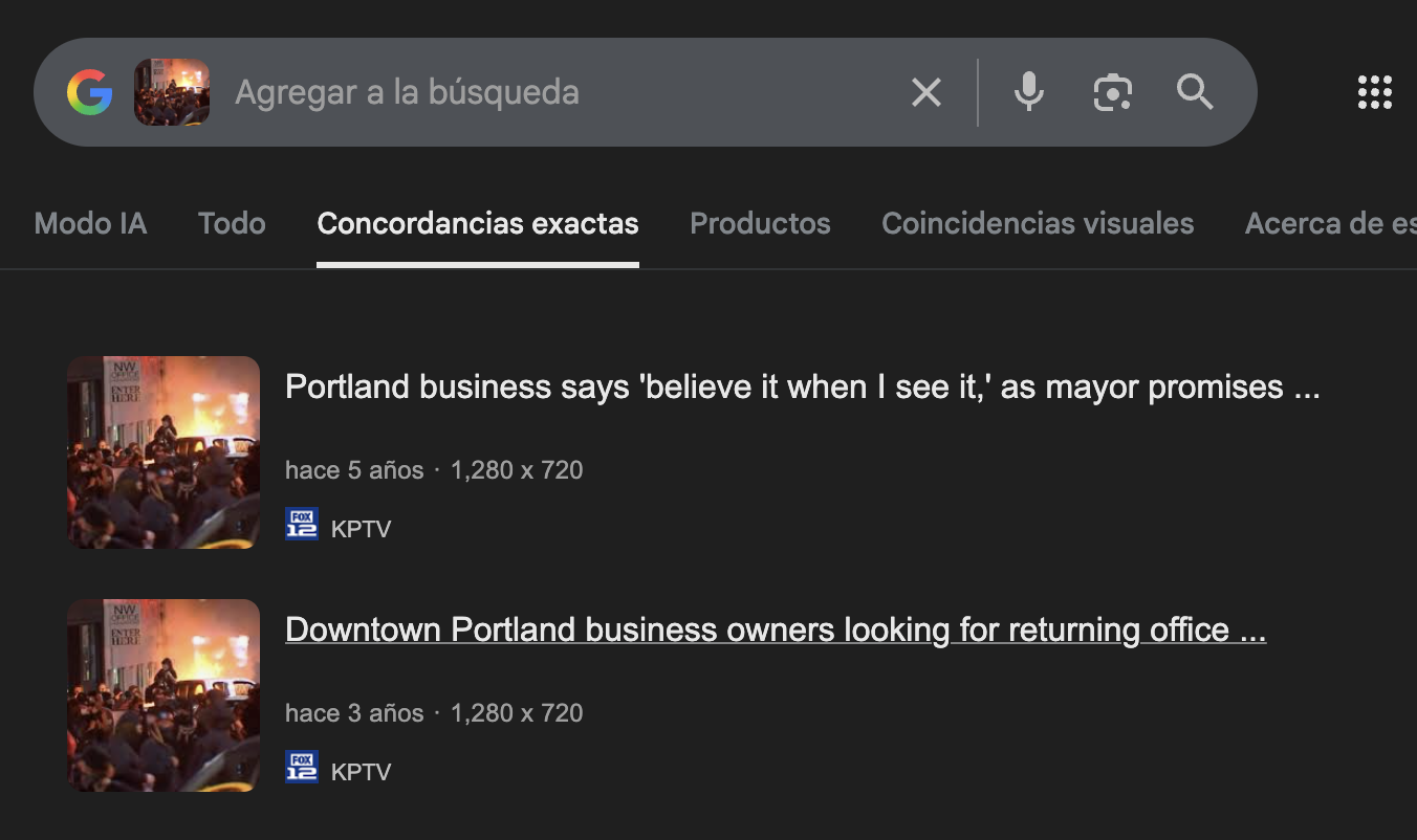 Mediante una búsqueda inversa en Google Lens encontramos que la publicación más antigua de la misma ocurrió el 27 de agosto de 2020. Fox News transmitió las mismas imágenes el 19 de agosto de 2020, según constató ProPublica.