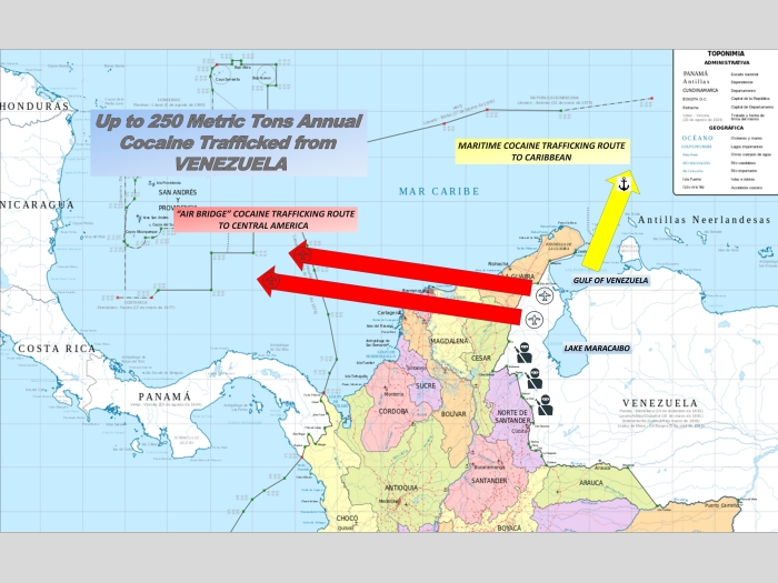 De acuerdo con la fiscalía, desde Venezuela se trafican entre 200 y 250 toneladas métricas de cocaína. Esto representa entre el 10% y 13% de la producción global anual estimada, de acuerdo con el Informe Internacional sobre la Estrategia de Control de Narcóticos (INCSR) 2025, un reporte anual del Departamento de Estado presentado al Congreso.