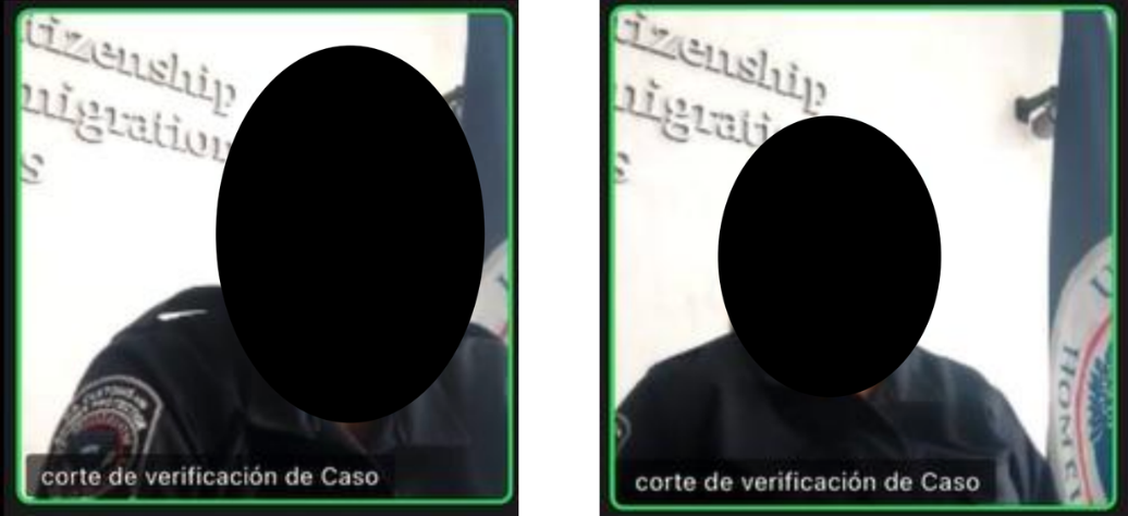 Parte del proceso para engañar a la gente incluía supuestas entrevistas para asilo y comparecencias ante el tribunal, en las que las víctimas participaron a través de videoconferencia. Estas videoconferencias falsas se llevaron a cabo en español, pese a que los procedimientos legítimos de inmigración en Estados Unidos se llevan a cabo exclusivamente en inglés.