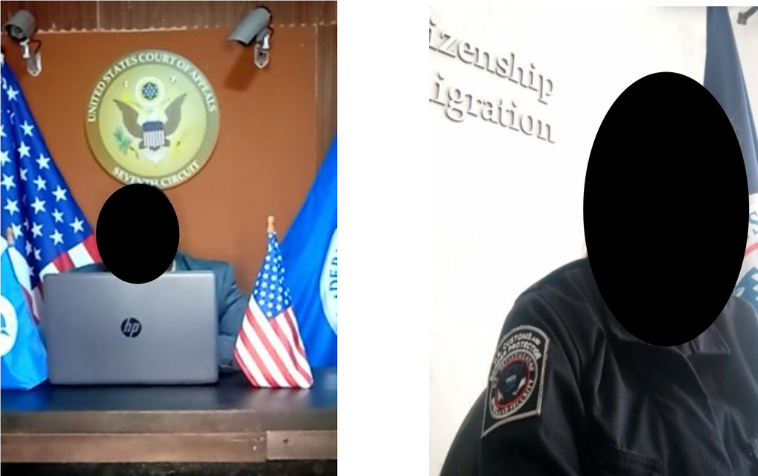 El grupo también se hacía pasar como jueces de inmigración (incluso vistiendo con togas o vestimenta de jueces) y agentes de la Oficina de Aduanas y Protección Fronteriza (CBP) y el Servicio de Ciudadanía e Inmigración de Estados Unidos (USCIS), precisa el DOJ.