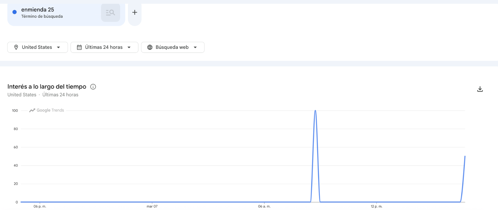 El llamado a invocar la Enmienda 25 también ha captado la atención en español, tanto en redes sociales como en búsquedas en Google.