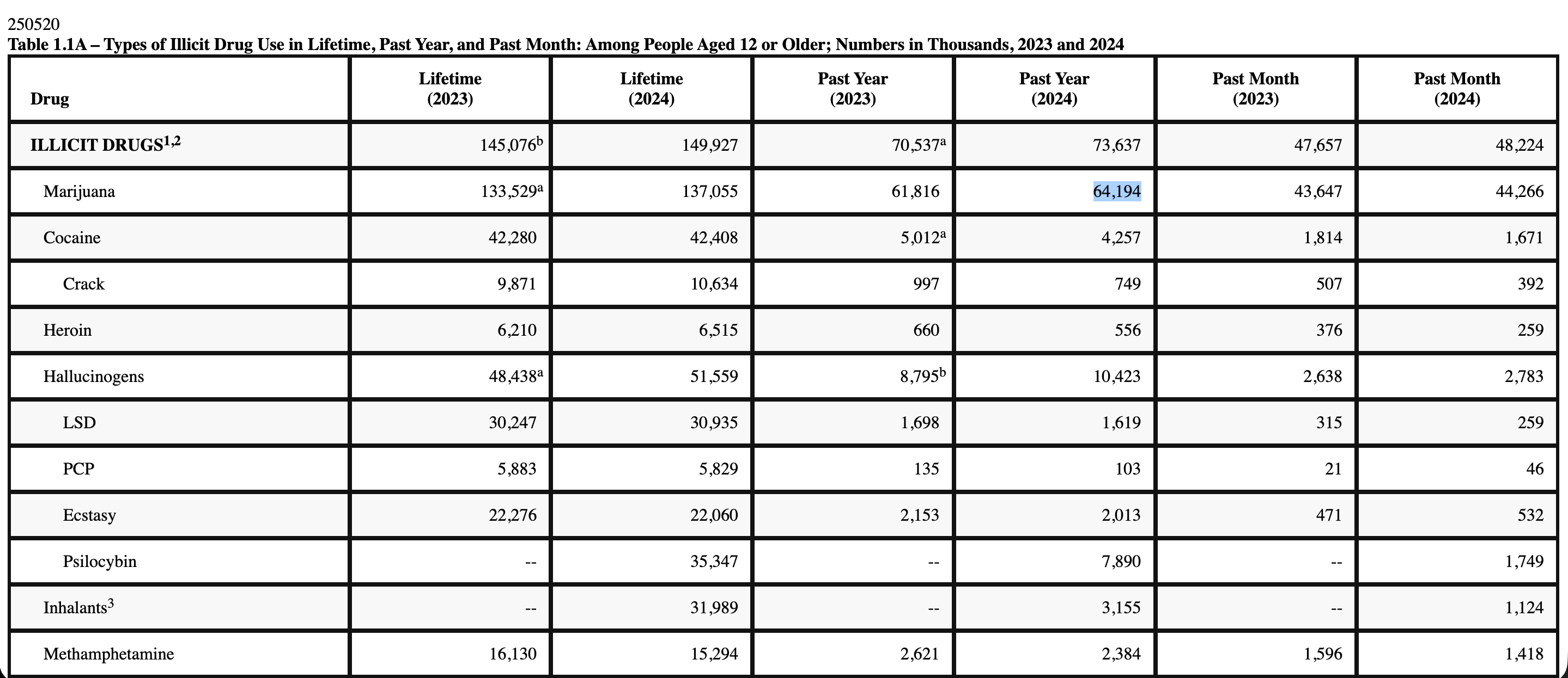 Entre 2023 y 2024, el consumo de marihuana entre mayores de 12 años se incrementó en alrededor de 2.3 millones de personas.