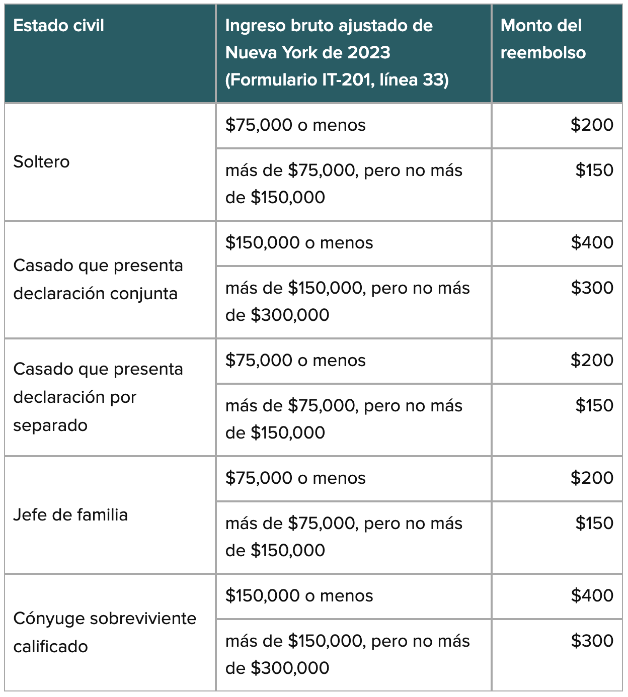 Fuente: New York Department of Taxation and Finance. Traducido al español por Google Translate.