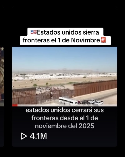 Videos en TikTok, como este o este, aseguran que el presidente Donald Trump firmó una orden ejecutiva para cerrar las fronteras de Estados Unidos a partir del 1 de noviembre de 2025. “Nadie entra, nadie sale ni con pasaporte ni con visa ni siquiera con un estatus legal”, afirman contenidos como este, que tiene más de 4.1 millones de vistas. Esto es falso.